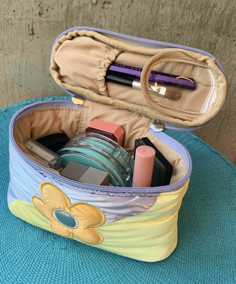 旅行時にもってこいのアイテム!ぷくぷくしてるからメイク道具も守られて、とても便利で可愛いです。
