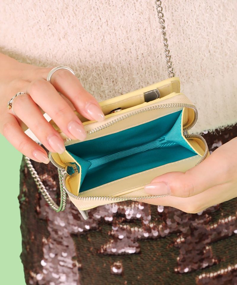 付属のチェーンを付けてアクセサリーバッグとしての使用もおすすめです。