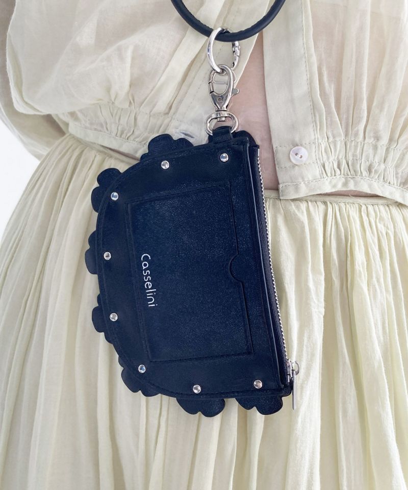 立体的なお花のモチーフが可愛らしいポーチと、シンプルな丸紐に仕上げたショルダー。 甘くなりすぎない組み合わせで、幅広いテイストに合わせることができます。 ポーチとショルダーは取り外し可能で、その日のコーディネートや用途に合わせて使い分けるのもおすすめです。 カラビナがついているため、お気に入りのストラップを加えるなどアレンジも楽しんでいただけます。
