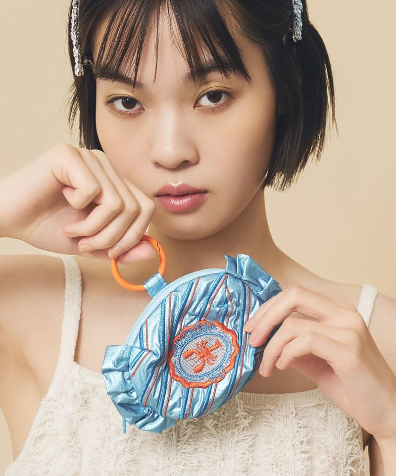 キャンディ型のコロンとしたフォルムが愛らしいチャームポーチ。