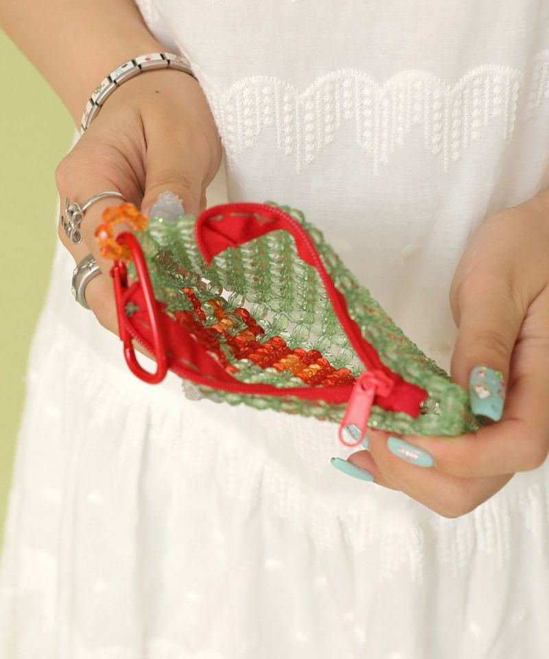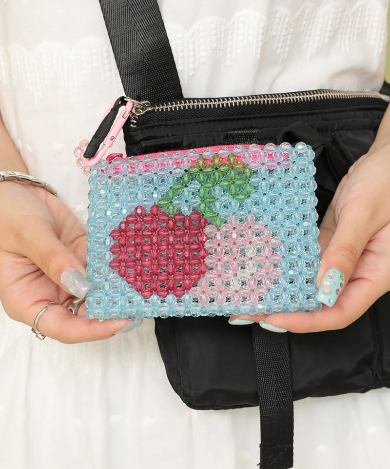 夏らしいクリアビーズを全面に使ったポーチです。