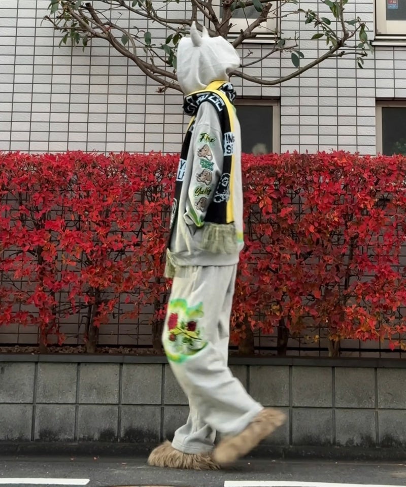 フーディーと合わせれば、おしゃれとネタ感の両立を叶えた、唯一無二の爆盛りセットアップです。