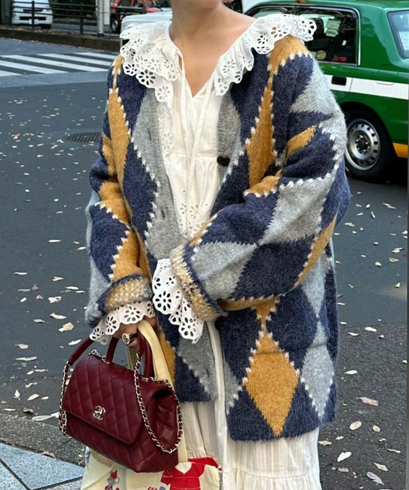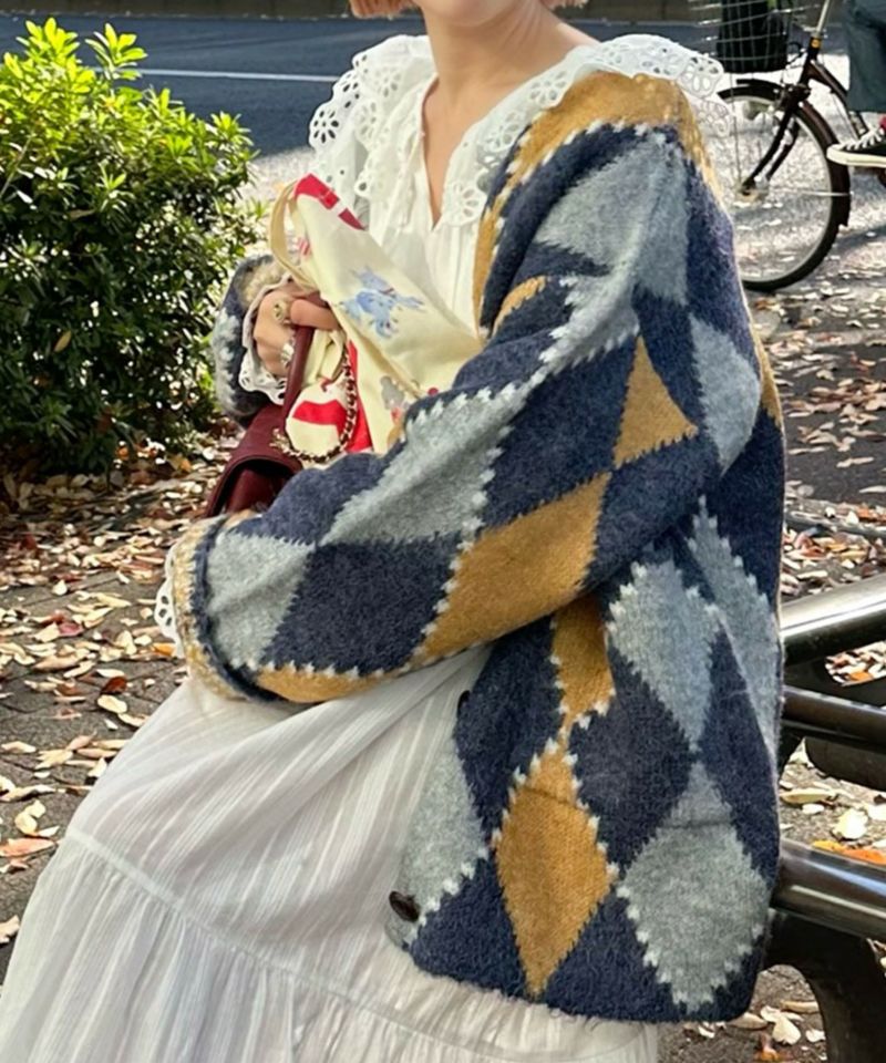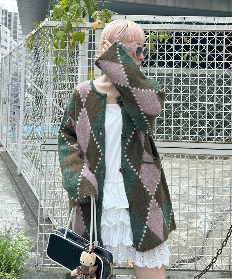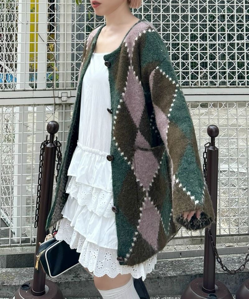 期間限定販売:【9/26(金) 20:00~10/5(日) 23:59】 【AlleyTokyo】アーガイル柄のふさふさBIGカーデ
