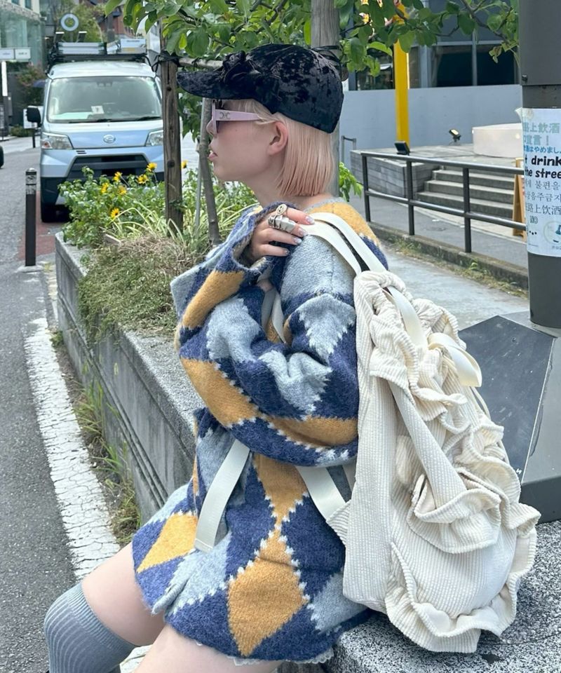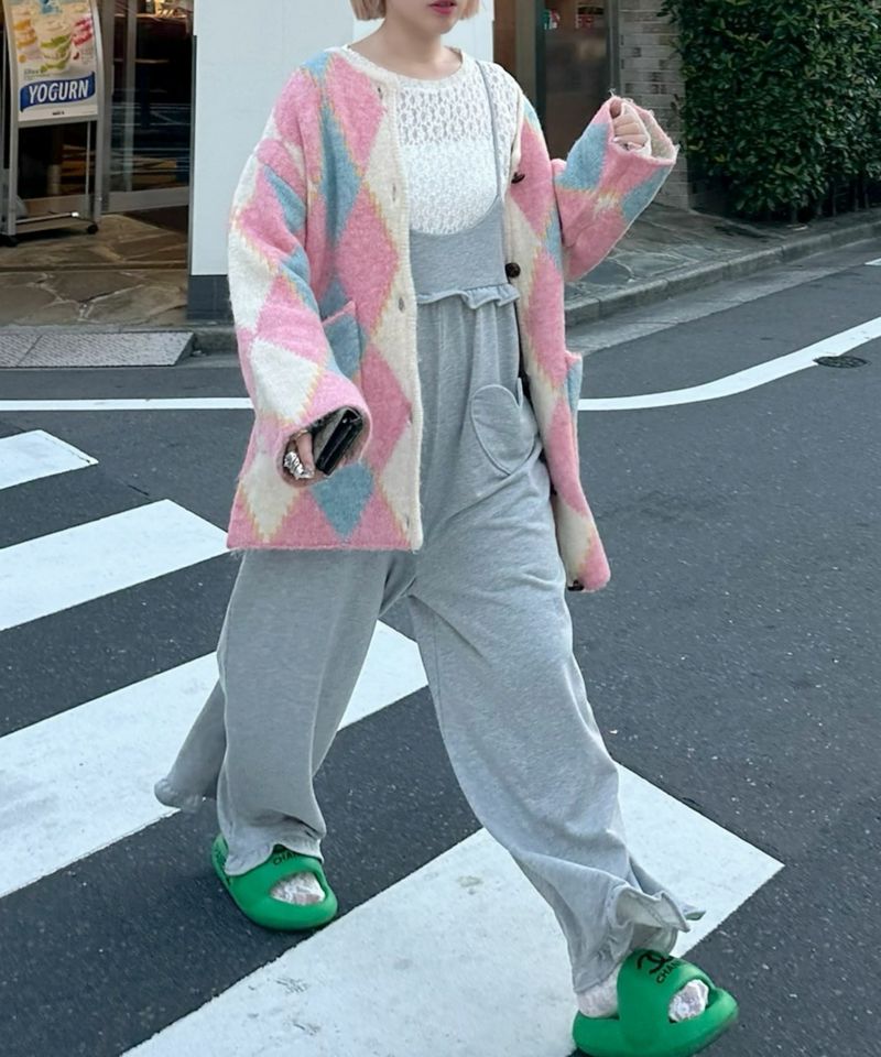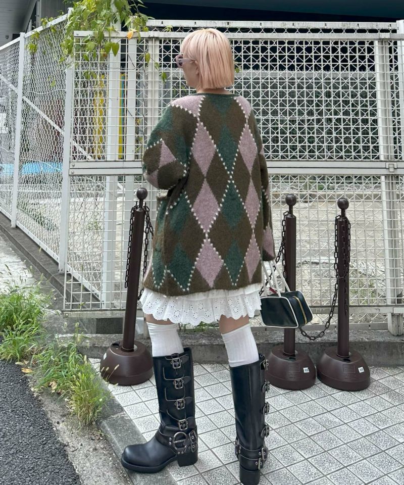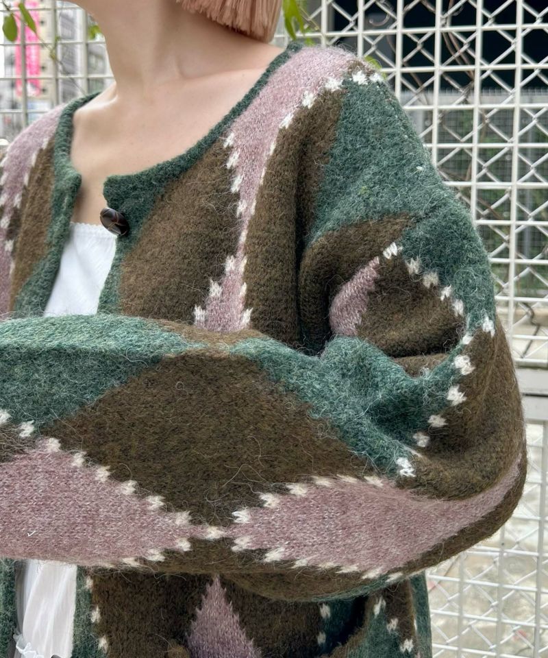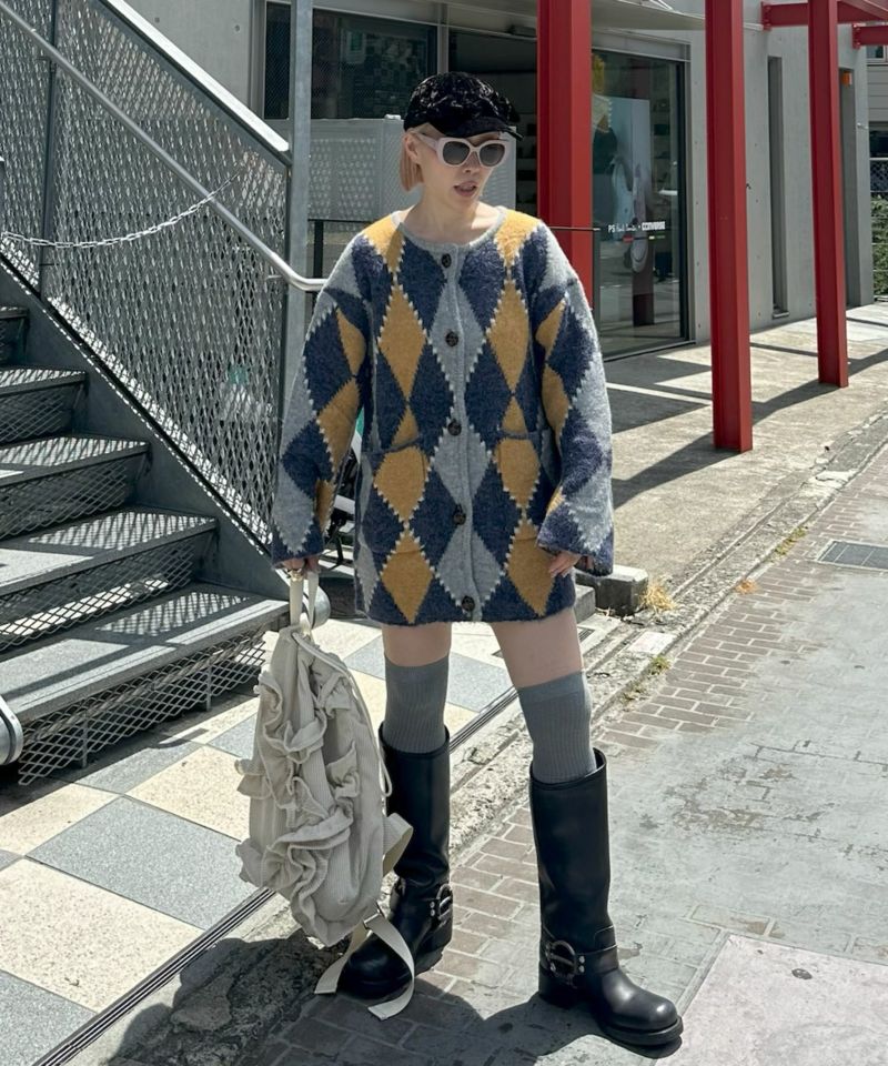 期間限定販売:【9/26(金) 20:00~10/5(日) 23:59】 【AlleyTokyo】アーガイル柄のふさふさBIGカーデ