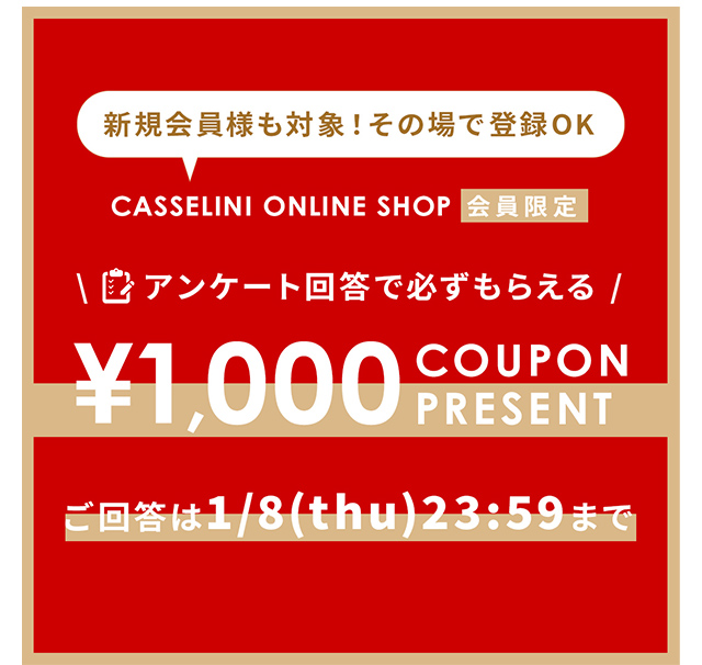 この機会にぜひCASSELINI ONLINE SHOPのご利用をお楽しみください。
