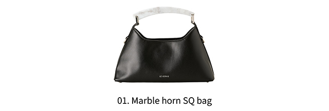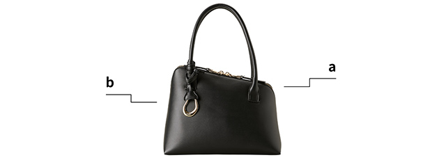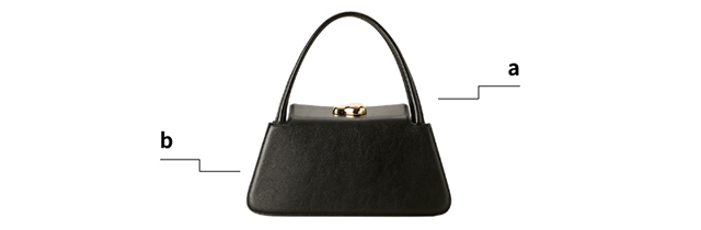 a. アシンメトリーなスクエアフォルムが、さりげなく個性を主張するハンドバッグ。