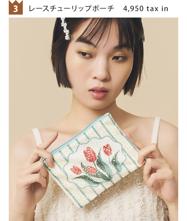 キャセリーニで人気のチューリップモチーフをあしらったレースポーチ。