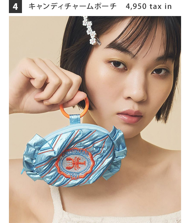 キャンディ型のコロンとしたフォルムが愛らしいチャームポーチ。