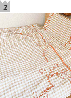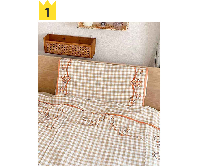 1 [Casselini HOME] フラワー刺繍枕カバー ¥4,400→50%OFF!¥2,200(in tax) 単体でも存在感のあるビッグ刺繍がポイントの枕カバー。 落ち着いた雰囲気のギンガムチェックに、オリジナル刺繍と艶のあるサテンパイピングでポップなCasseliniらしさをプラス。 洗濯してもしわになりづらいポリエステル素材を使用しているので、お手入れもしやすいです◎