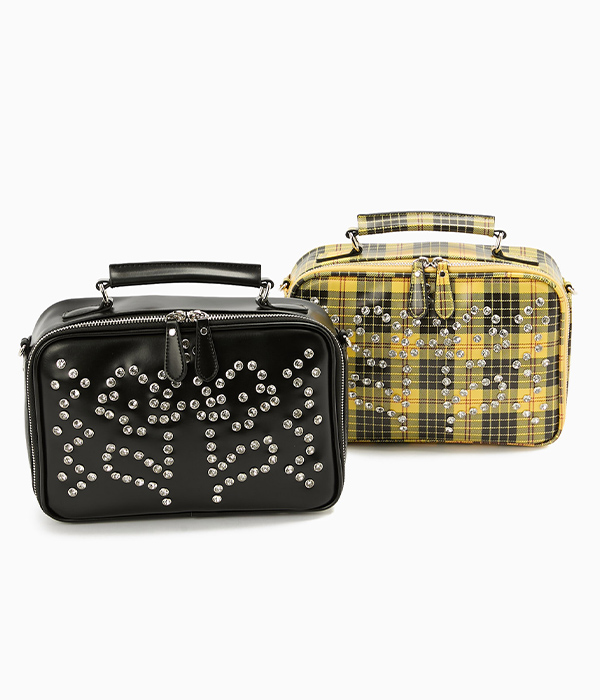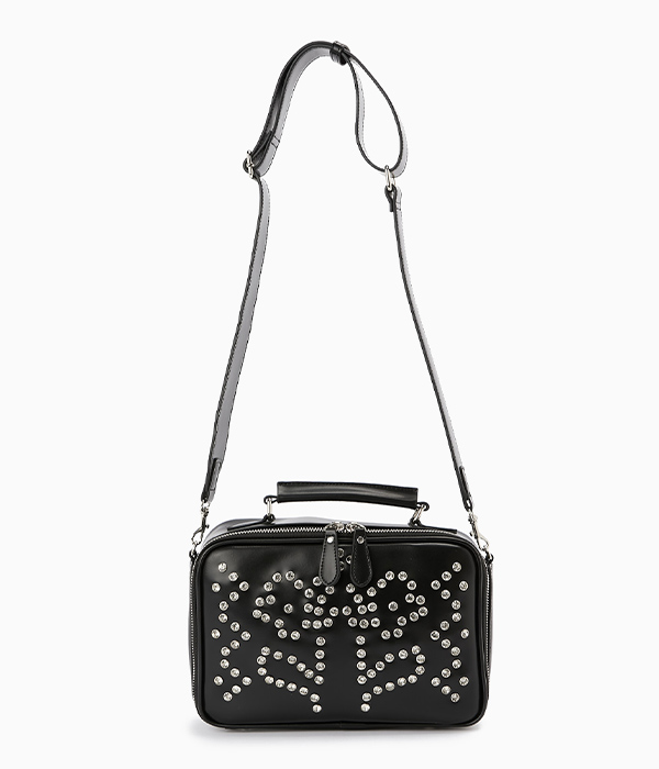 オモテ面には、カシメで留められたラインストーンで花柄を。