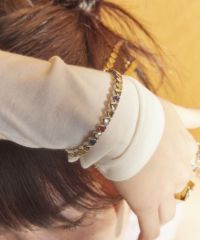 小さなハートモチーフにカラフルなビジューがちりばめられたポップで可愛らしいブレスレットでした。 色々なファッションに合わせやすく、付け心地も良いので、大活躍しております。 -