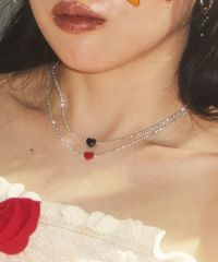 キラキラのビーズチェーンとブラックカラーのハートとの組み合わせが大人可愛いネックレスに一目惚れしました。 エンドパーツにリボンパーツがあしらわれていて、後ろから見られても可愛らしい大満足のお品物でした。 -