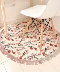 一目惚れのチューリップ柄を購入しました。ジャガードで柄と色味が兎に角可愛くてお気に入りです!ラグの滑り止めが付いていない分ラグだけでなく他の使い方も出来て、そこが凄く良かったです◎私は床に敷く用と他の用途分で2枚買いました。ずっと眺めていられる可愛さでとてもお気に入りです!